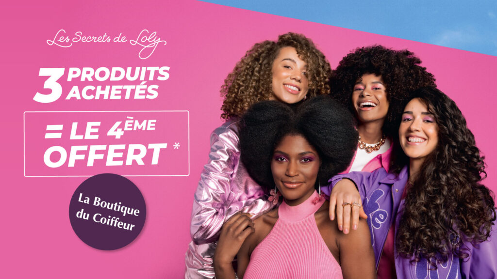 Les cheveux ondulés, bouclés, frisés et crépus sont à l’honneur : dès 3 produits Les Secrets de Loly achetés, le quatrième est offert !